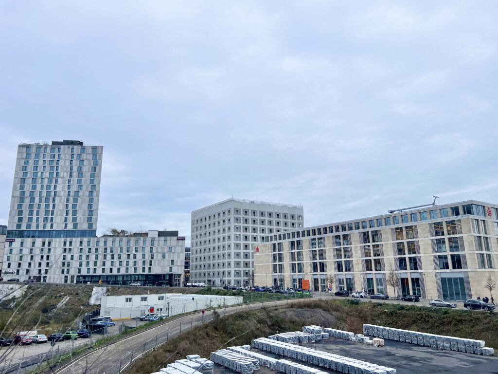 中でもこのシュトゥットガルトで一番おすすめの美しい建造物はこちらの写真の真ん中にある真四角の建物、図書館です。